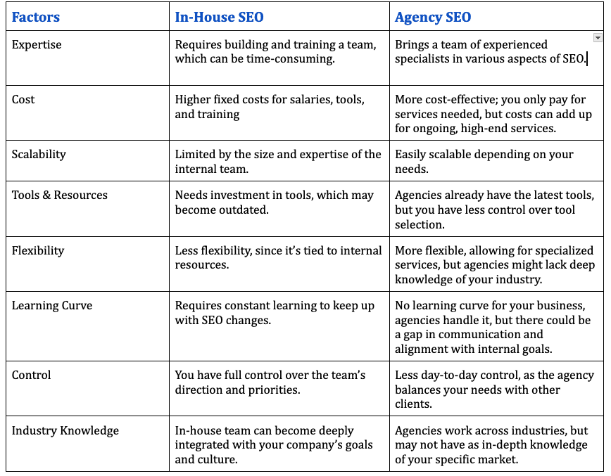If you have the budget and resources to build a highly skilled team and keep them trained, in-house SEO could work. But if you want flexibility, access to experts, and a more cost-effective option, partnering with an agency might be the smarter move.